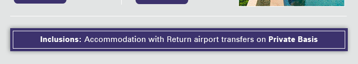 Remarks: Rates are per person on Twn/Dbl sharing basis, Commissionable to agents. Rates are indicative with the lowest available rate & valid till 31Oct' 18. Rates & Offer are subject to change without prior notice & subject to availability. No refund on any unutilised services. Surcharges will be applicable during Special Events & Public Holidays. | ||||||||||